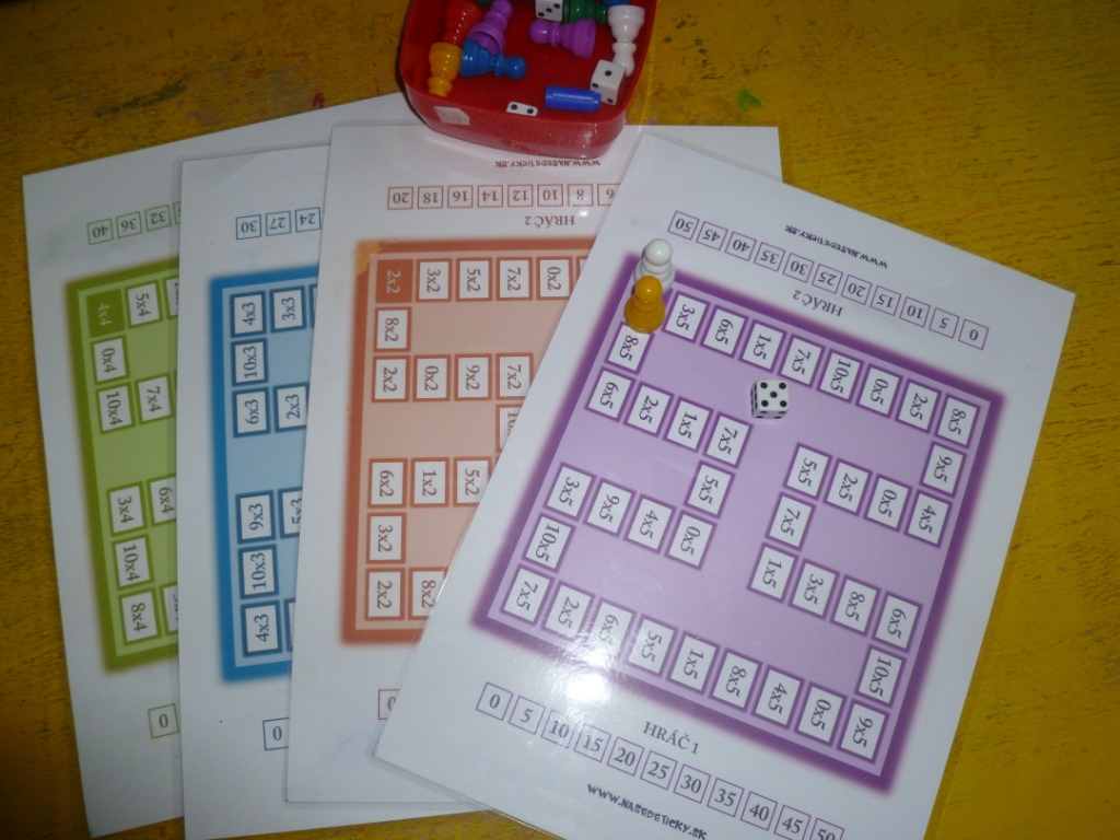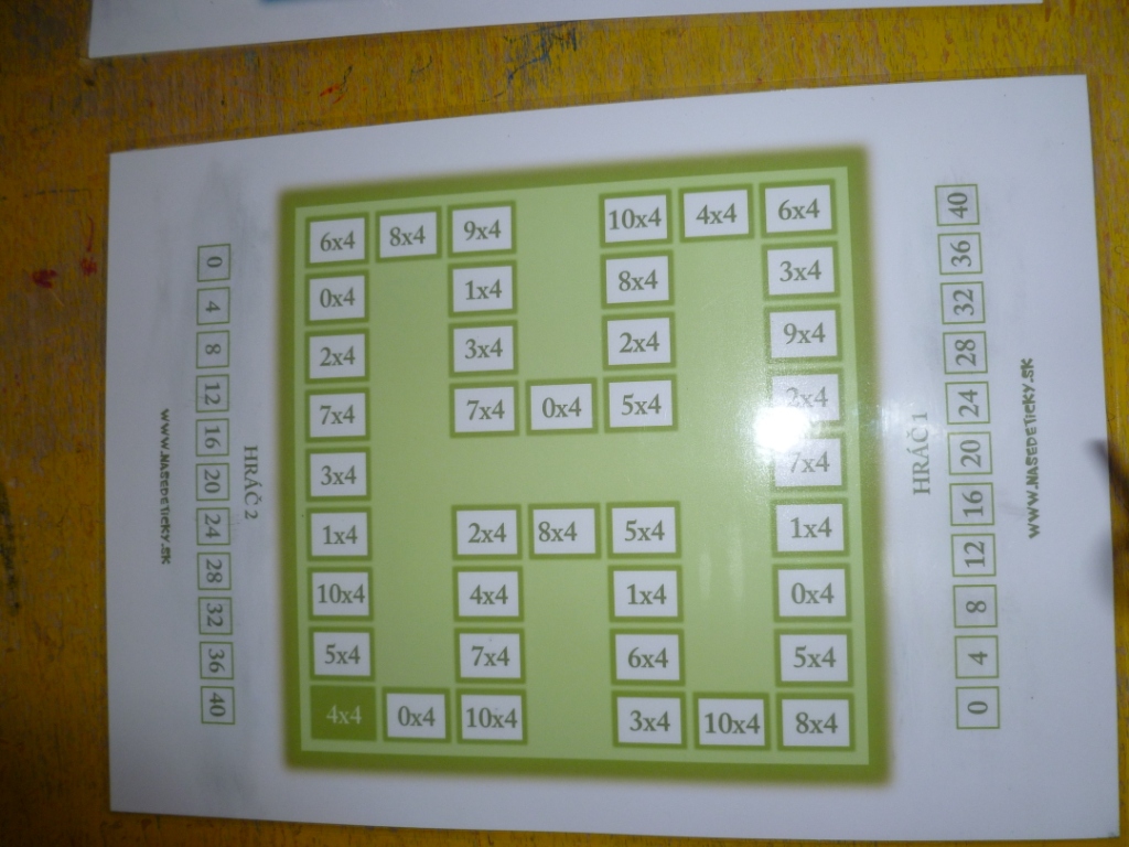 Herný plán s násobilkou pre jedno číslo, kocka a panáčiky. Výborné precvičovanie násobilky vo voľných chvíľach - SSS, prestávka a pod.