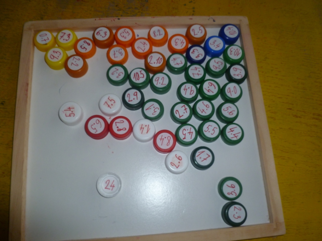 Využitie vrchnákov z pet fliaš na SSS aktivity, prestávku alebo samostatnú prácu na hodine matematiky aj so spätnou väzbou. Na opačnej strane vrchnáku je výsledok násobenia alebo delenia.