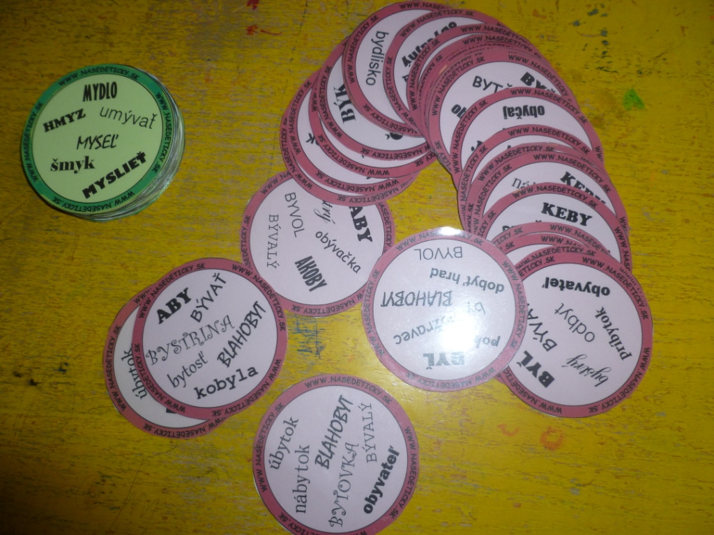 SSS aktivitka, prestávkova aktivita alebo cvičenie vo dvojici. Hrou si žiaci precvičujú vybrané slová. Vytlačené, zalaminované, vystrihnuté sú v krabičkách v ponuke v triede kedykoľvek :).