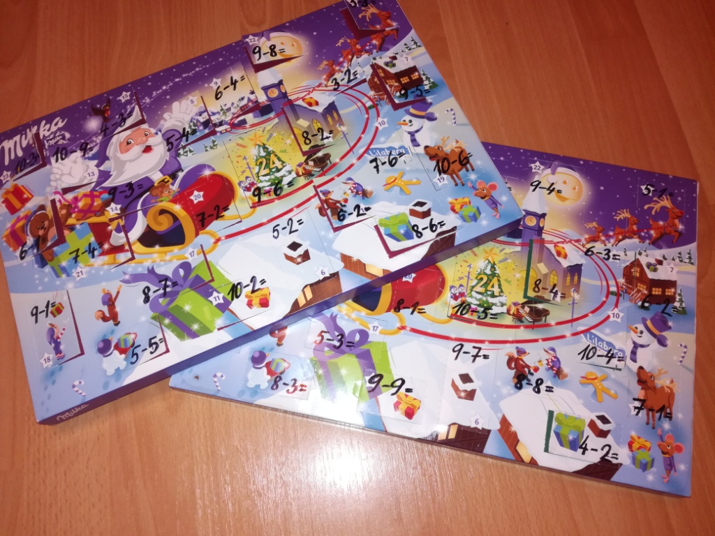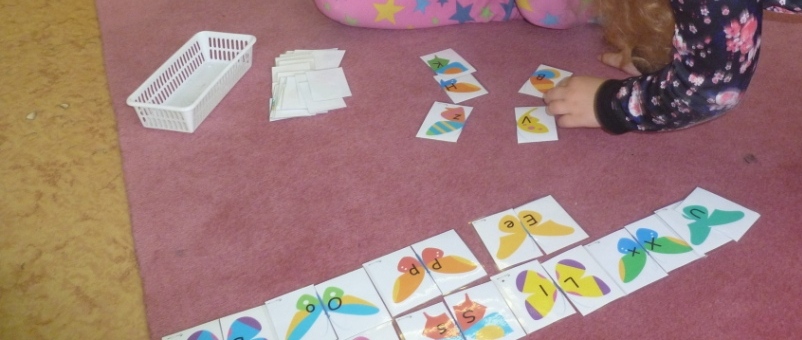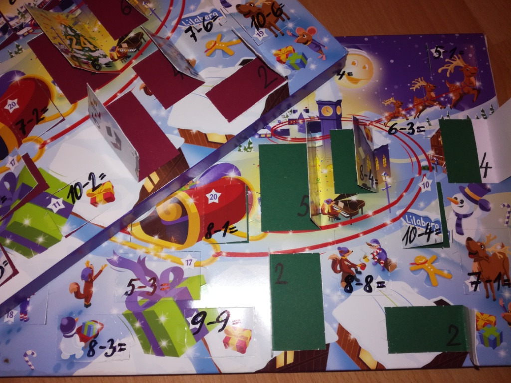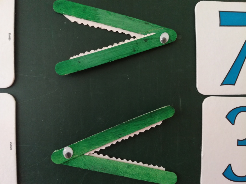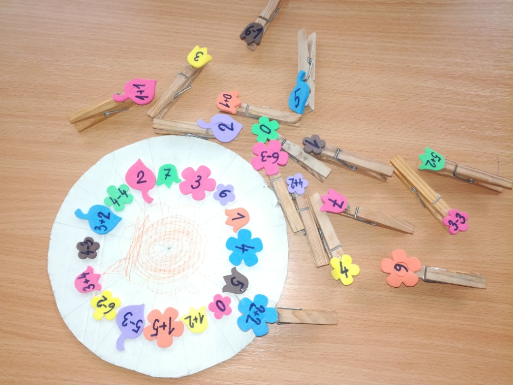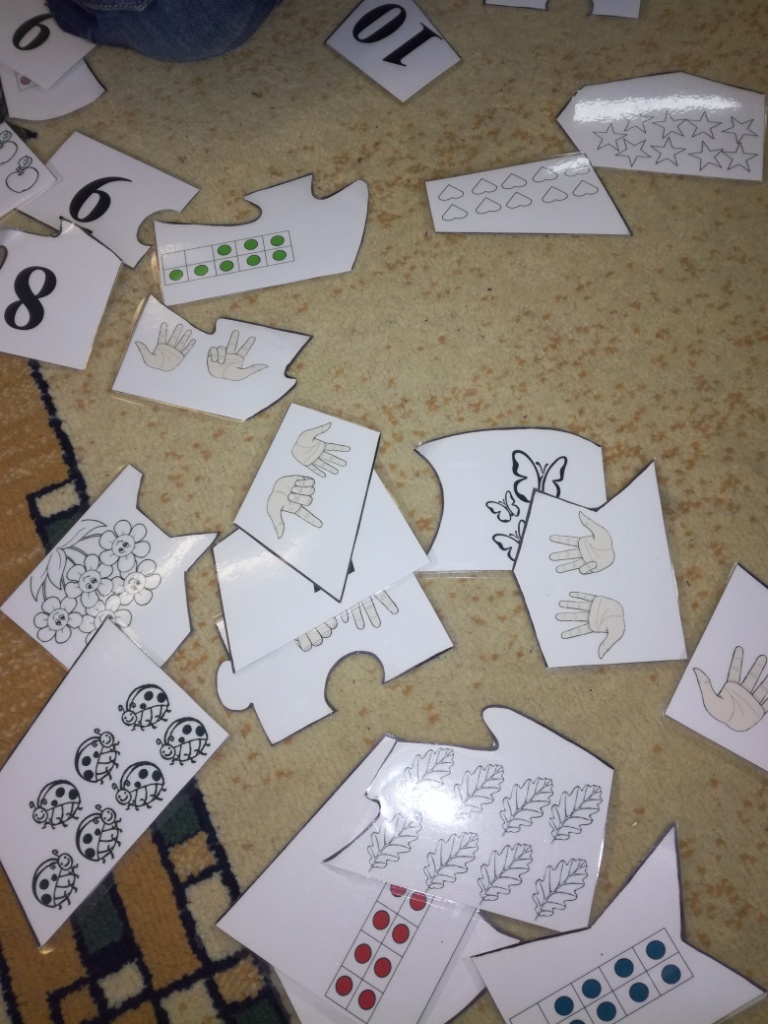 Veľké legové kocky polepené číslami. V úvode prvého ročníka deti skladajú rad čísel do desať, teraz robia rozklad čísla (k veľkej kocke priradiť dve malé) alebo sčítaciu rodinku.