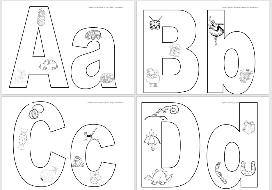 Vyfarbi len tie obrázky, ktorých názov začína na danú hlásku/písmeno.
